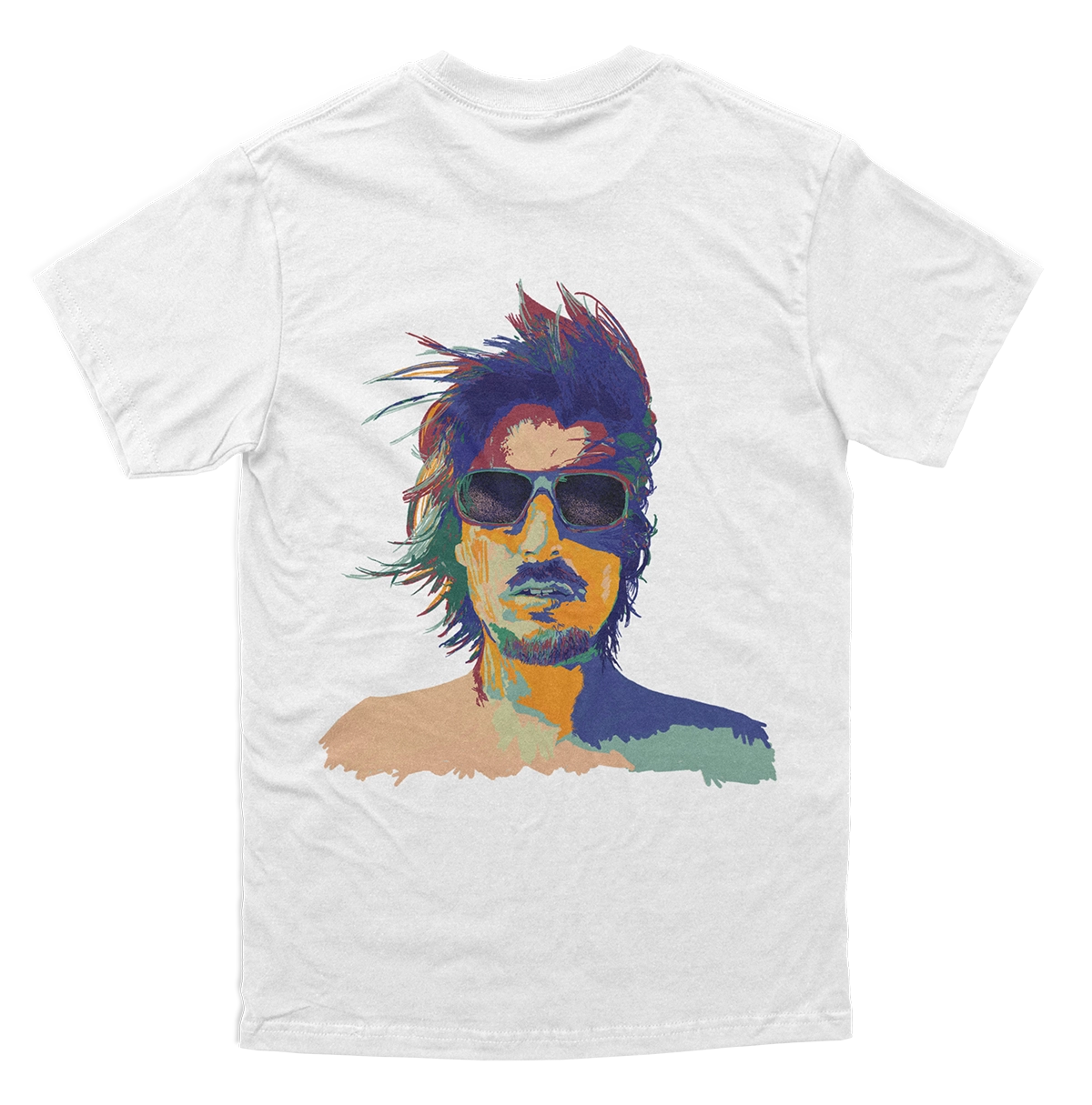 Danny 2.0 t-shirt, inspired by Danny Ocean’s Babylon Club era🌴 Printed on a classic white tee with colorful tropical DTF print — small postal-style chest design and full-back illustration of Danny’s face.